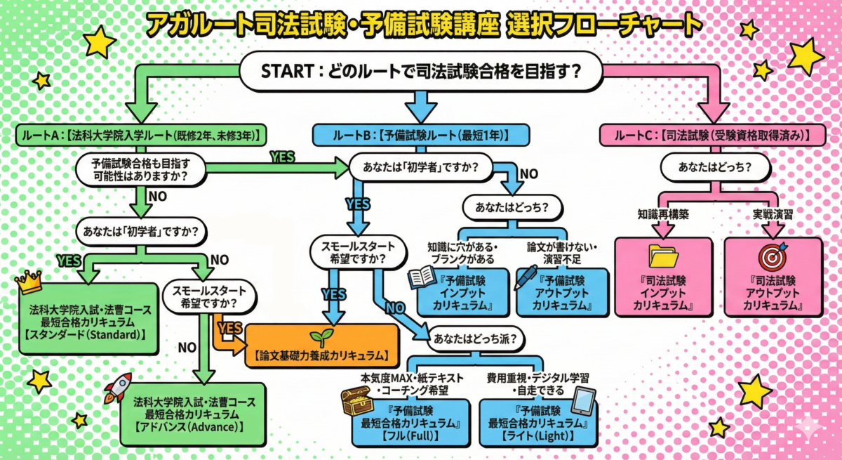 これから学習を始める方は、まず「予備試験最短合格カリキュラム」または「法科大学院入試・法曹コース最短合格カリキュラム」のページを確認し、自身の現在の状況(学生か、社会人か、学習経験なしか)に合わせて資料請求や受講相談を行うのが、「最短ルート」への第一歩となります。