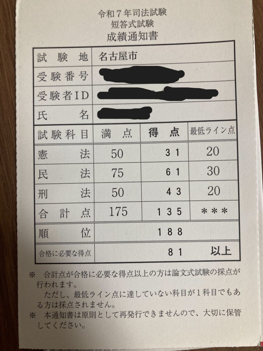 「こっから、人生が転落して行くんだ。自分は、今後『司法試験を目指したことがある』という事実のみで形成される、なけなしのプライドに固執することになるんだな」と思いました。