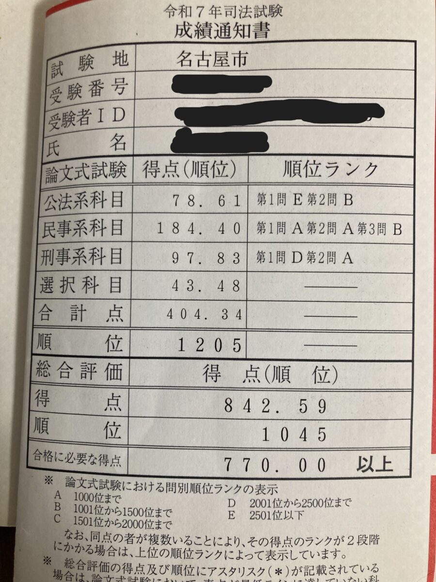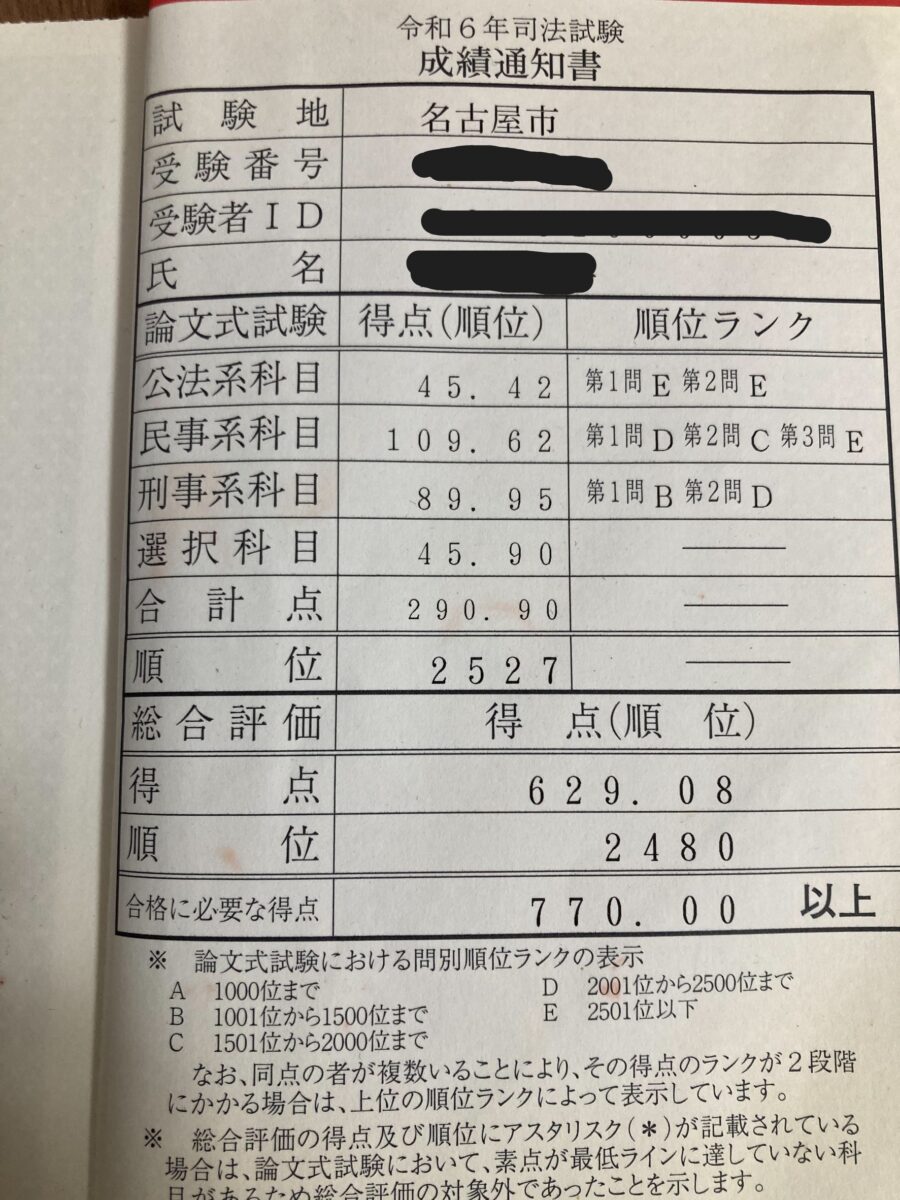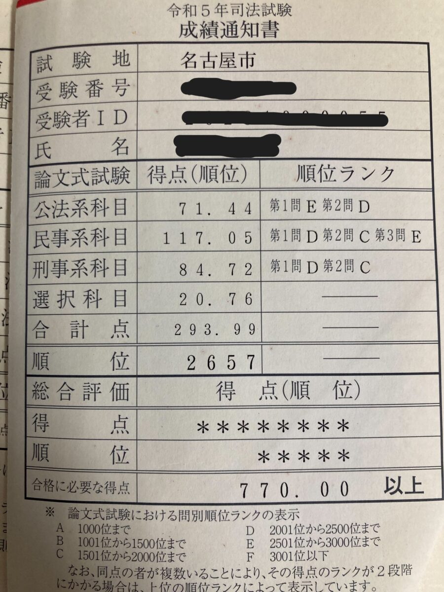 合格までの受験回数と、これまでの成績推移(短答・論文のランク、今年も含む)を教えてください。