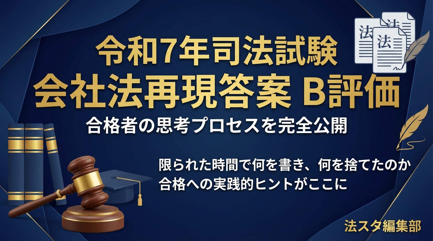 令和7年司法試験において見事合格を果たした橋龍さんより、会社法の再現答案(B評価)をご提供いただきました。