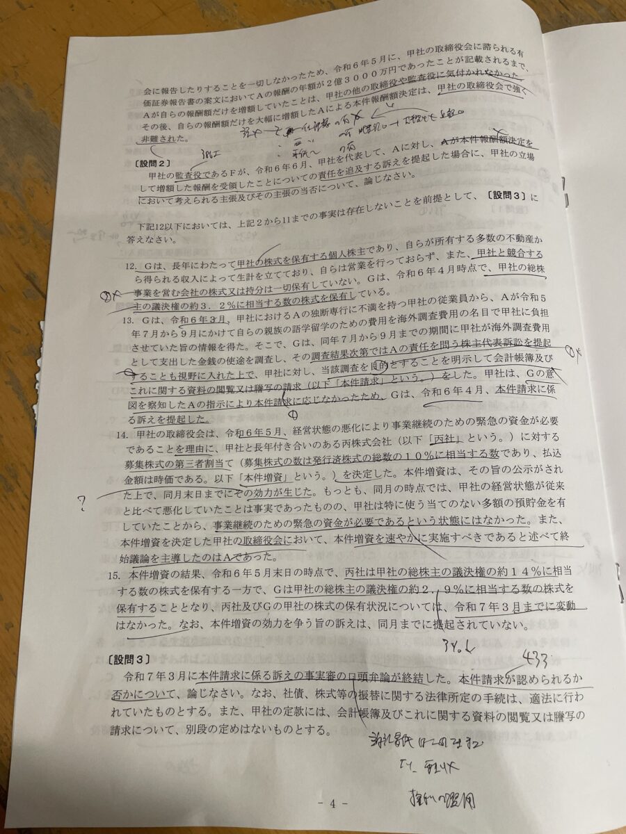 本記事は、令和7年司法試験に合格した橋籠さんによる、試験会場での会社法の思考過程を再現した貴重な資料です。