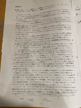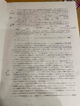実際の問題用紙と答案構成もご参考までに載せておきます!もっとも、字が汚いし、メモ程度のため、参考になるかは分かりませんが、、(笑)。私は、答案構成は、問題文の考慮要素にラインを引き、論点や法律構成・用いる考慮要素をメモしておく程度でした。