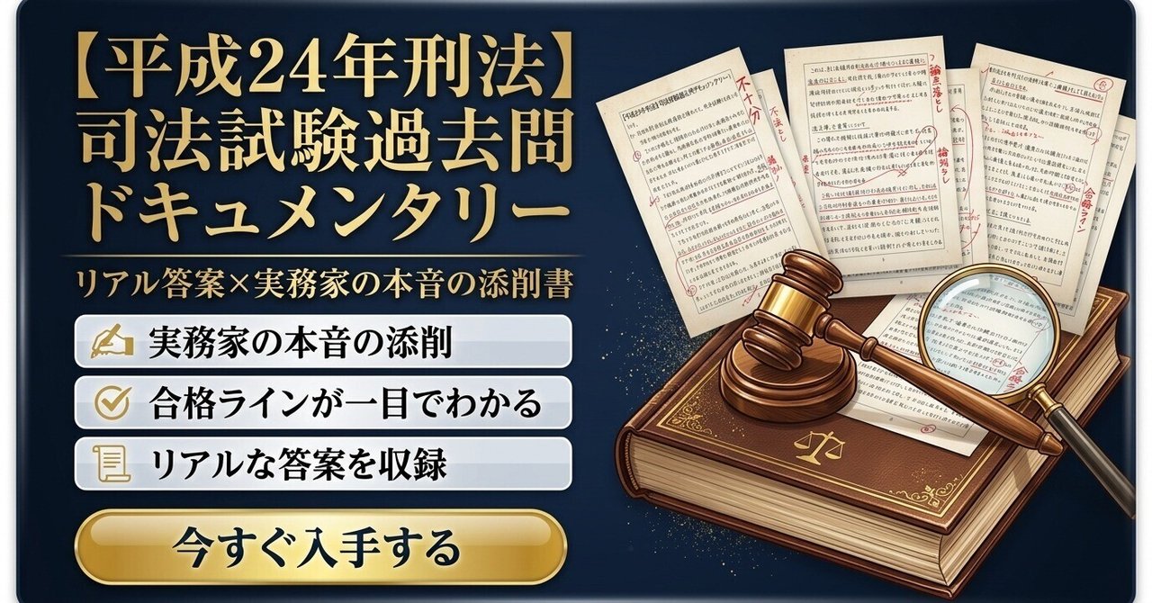 【平成24年刑法】司法試験過去問ドキュメンタリー【リアル答案×実務家本音添削】|法スタnote はじめに――この教材を手にしたあなたへ 人の失敗から学ぶのは、最も賢い学習法の一つです。 自分が同じ失敗をするには、時間もお金もかかります。しかし他人の失敗を観察し...