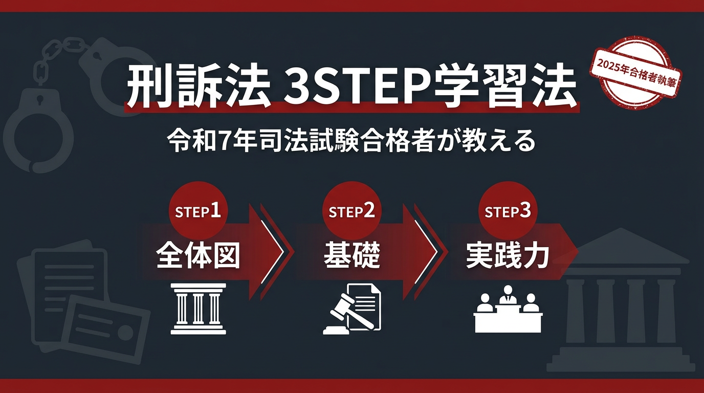 今回は、「刑事訴訟法」の3ステップをご紹介しましょう。