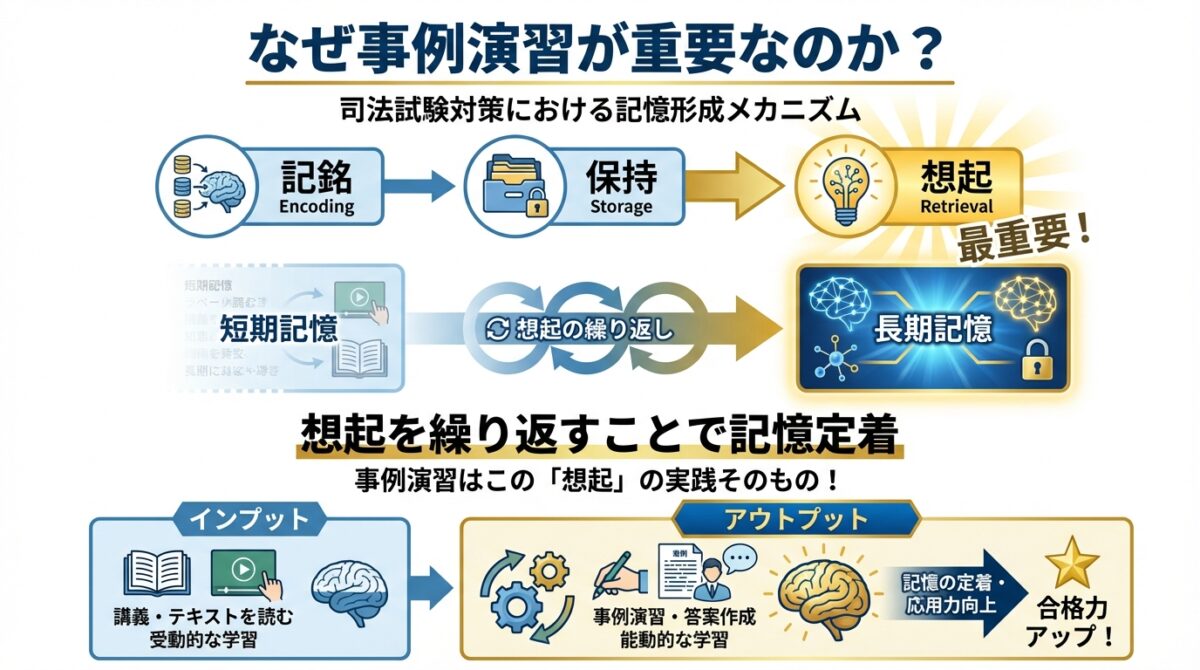 司法試験では、学習した知識を短期記憶から長期記憶に移行することが非常に大切です。